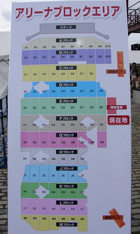 特に上手側の花道は会場の外にいてもメンバーが見える位置です。
